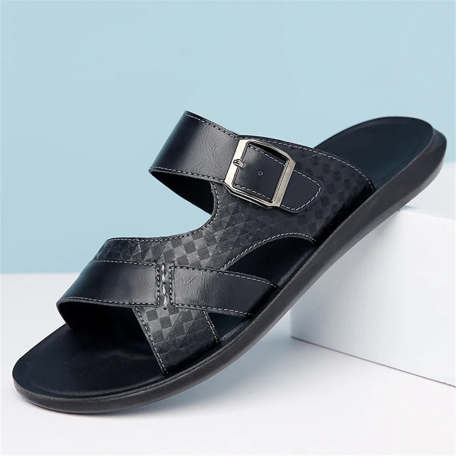 Crafted with a contoured footbed, matte textured panels, and a clean buckle strap, our slip-on sandal blends smart structure with next-level comfort. The soft-flex insole cushions your stride, while the slip-grip sole keeps you steady from doorstep to dinner plan. It's low effort with high standards.