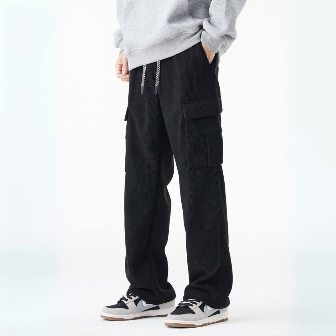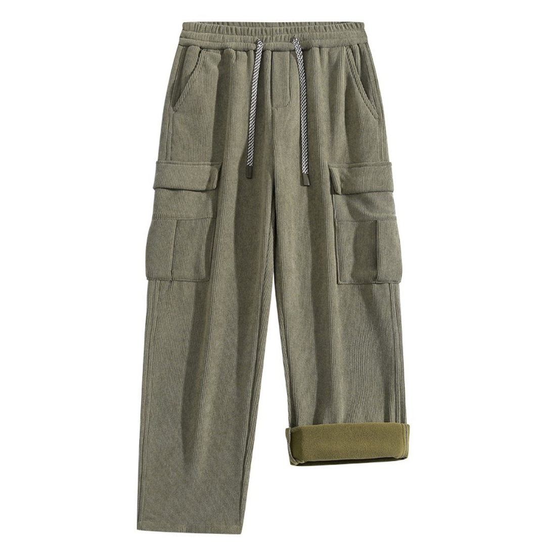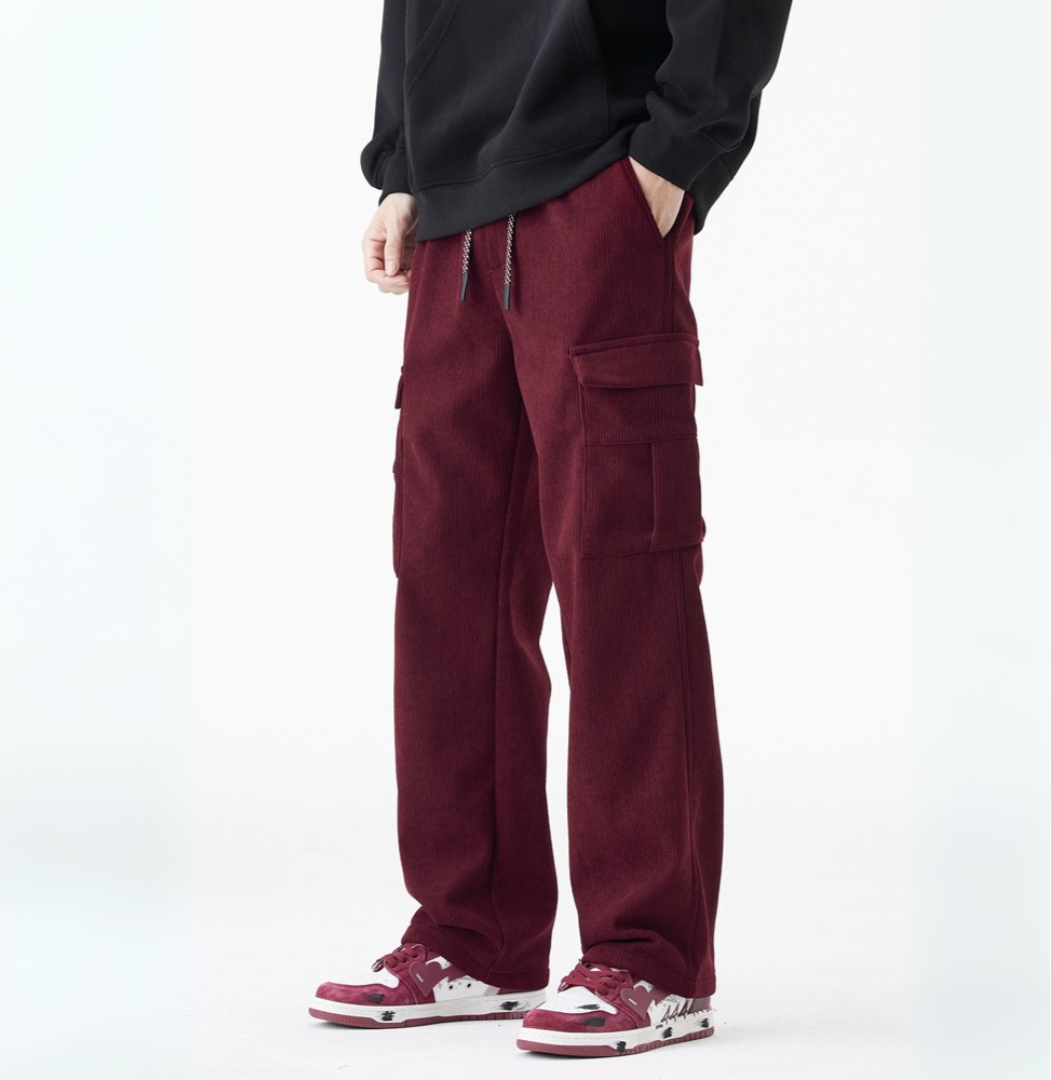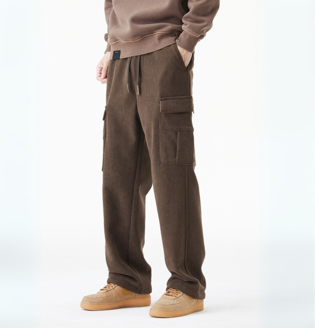 Prepare for those chilly winter mornings in style with these timeless corduroy pants, featuring a buttery soft fleece lining and a slick streetwear aesthetic that will look good in and out the house. The crisp straight-leg cut and drawstring waist ensure a tailored yet relaxed fit, and the utility pockets are perfect for carrying your essentials.